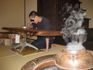 "漆は湿度で乾く"ということで火鉢にかけてある釜のふたは開けています