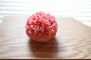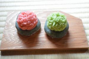平時は練りきりと云う生地(弊店では備中白小豆を山の芋でつないだもの)を