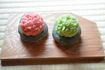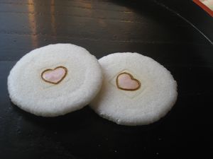 ハートの焼印を押してピンク色でお色つけいたしました。