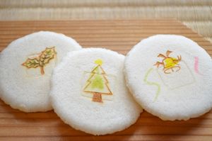 お茶席でおつかいは勿論のこと、赤ちゃんから・お子さん・ご年配の方まで喜んでいただいております。餅米だけでお煎餅を焼き、裏面に和三盆糖の蜜が塗ってあります。添加物を一切使用していないので赤ちゃんが安心して食べていただけるのだと思います。