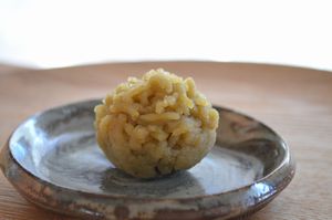 さて、写真の上生菓子は きんとん(金団)という種類です。